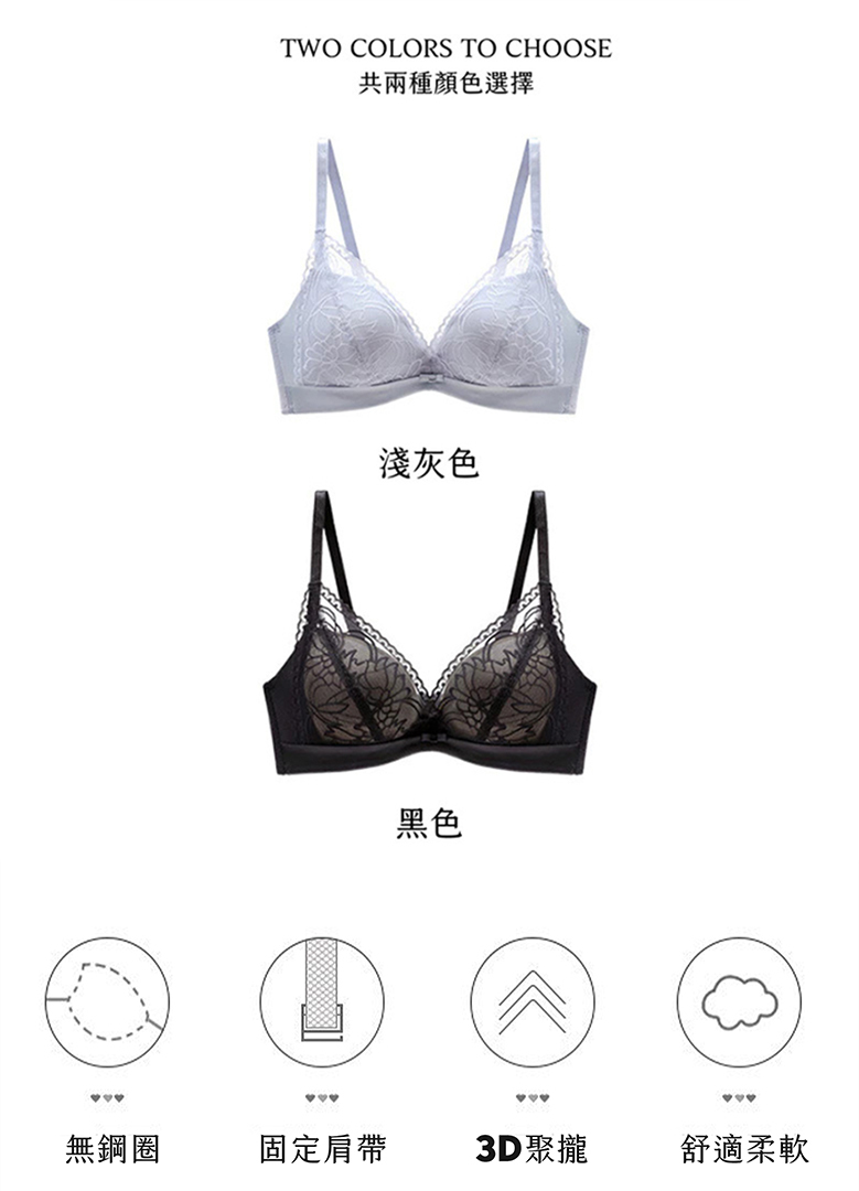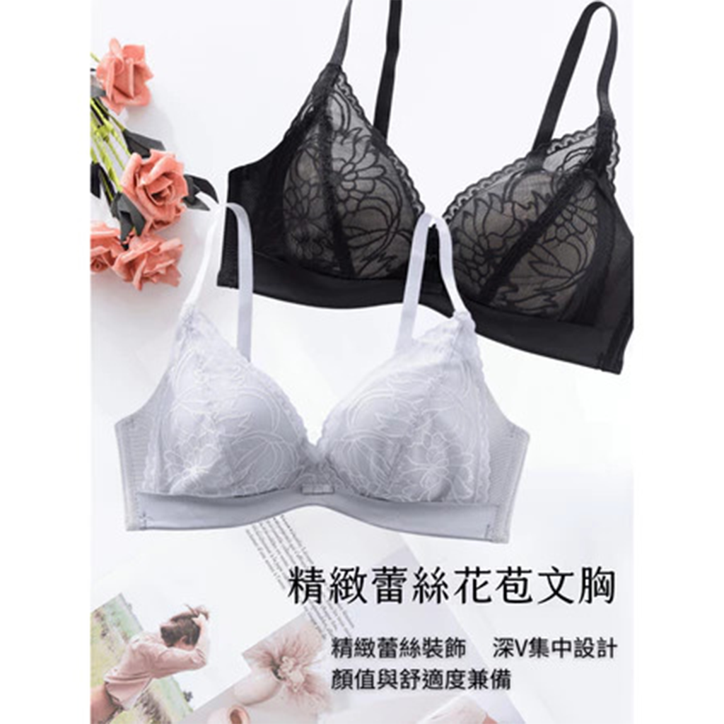 精緻蕾絲花苞文胸無鋼圈内衣套裝