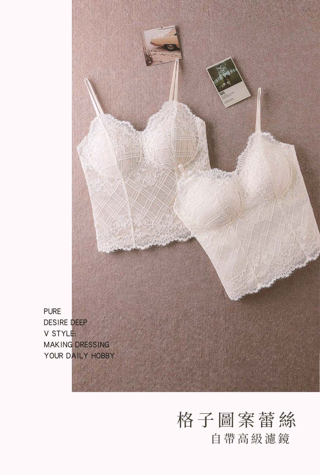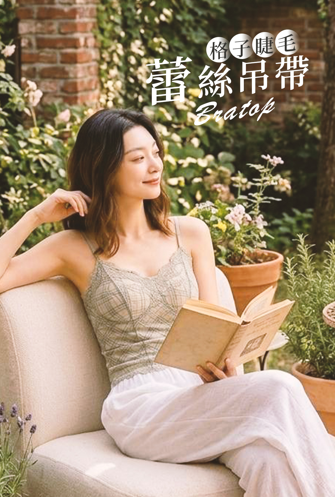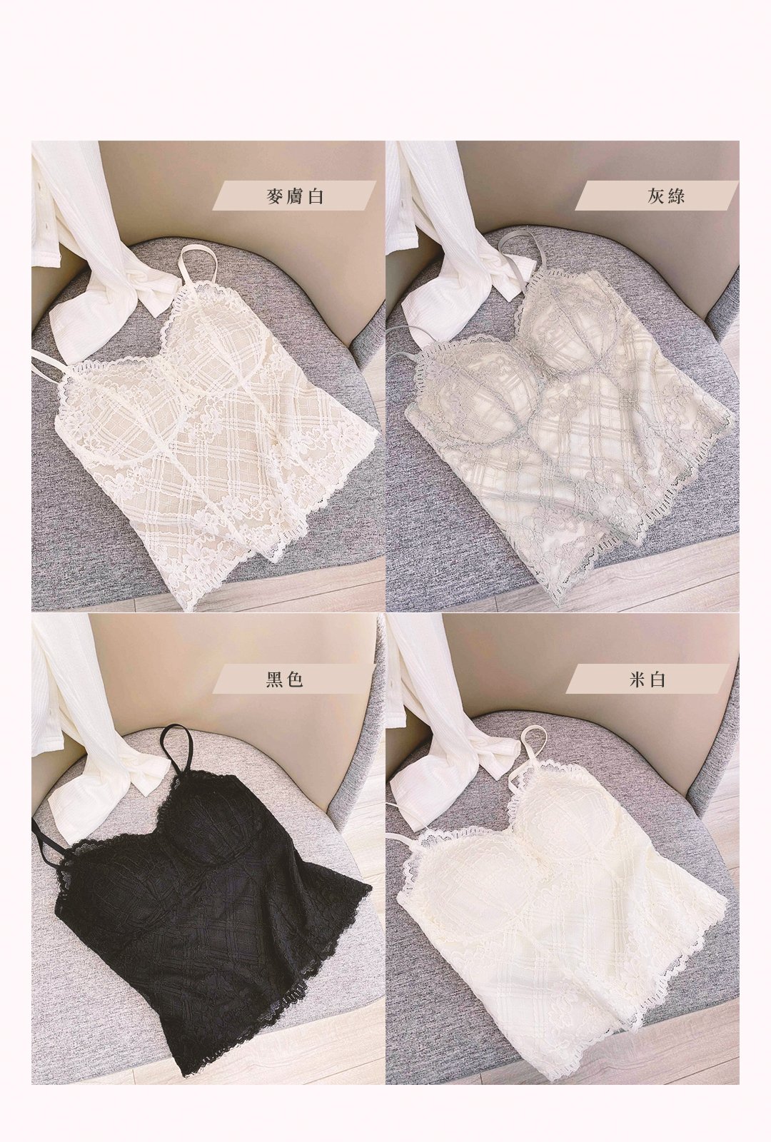 這件Bra Top主打「好看+好穿」。格紋蕾絲讓整體更有層次,單穿也有造型感;水滴杯自然托高,讓胸型更圓潤好看。高彈面料貼身不勒,側邊加高設計能包副乳、修飾線條。細肩帶與美背剪裁,搭外套或單穿都很加分,是一件從內搭直接升級成穿搭主角的單品。