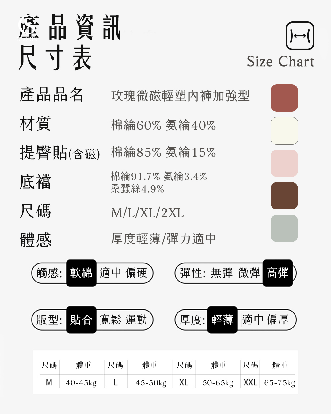 玫瑰微磁輕塑內褲加強型 -摩卡慕斯(5色)