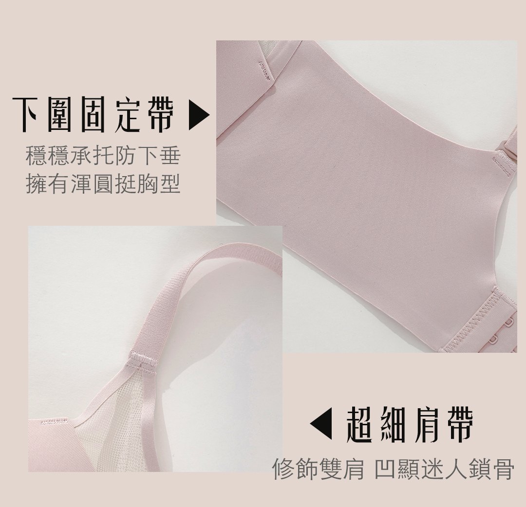 下圍固定帶防下垂,即使沒有鋼圈也能給妳全天穩定支撐。