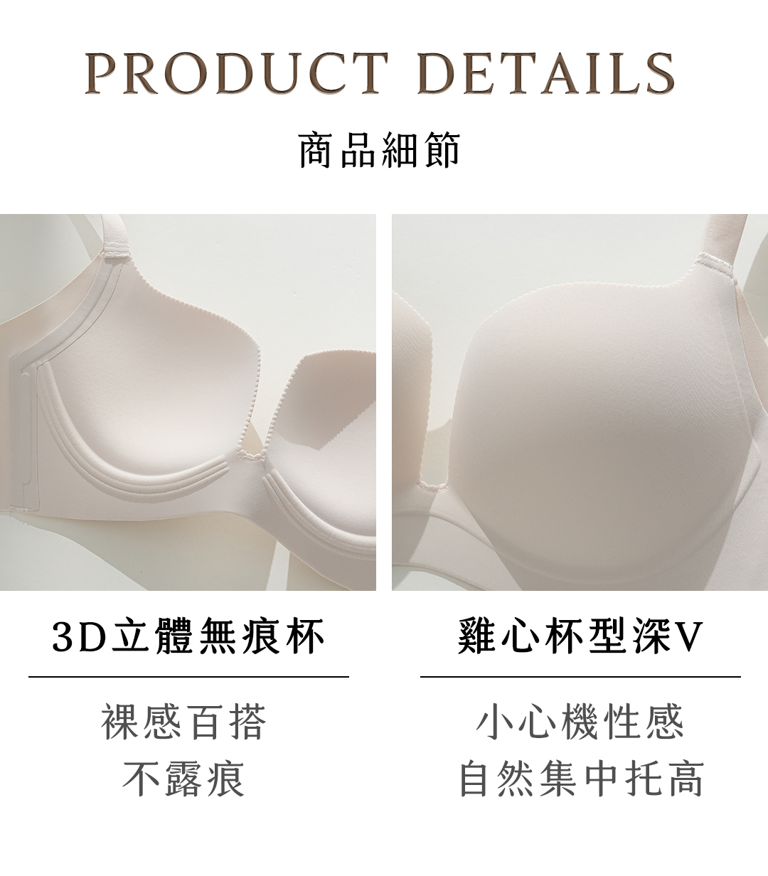 🔹雞心杯型深V剪裁,自然托高集中,日常也能展現小性感。