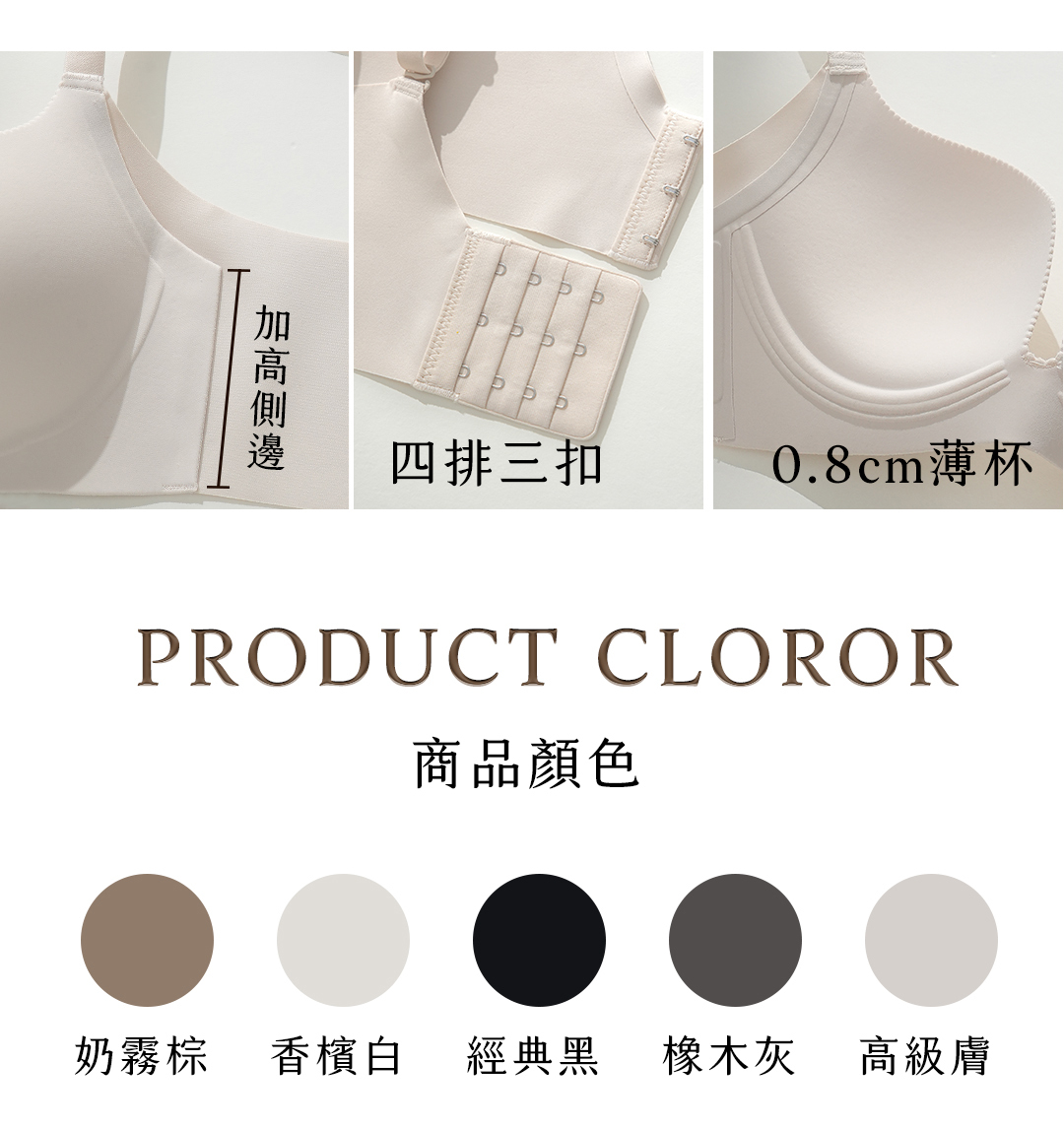 🔹高側邊包覆,穩定收攏副乳,下胸更有支撐力。