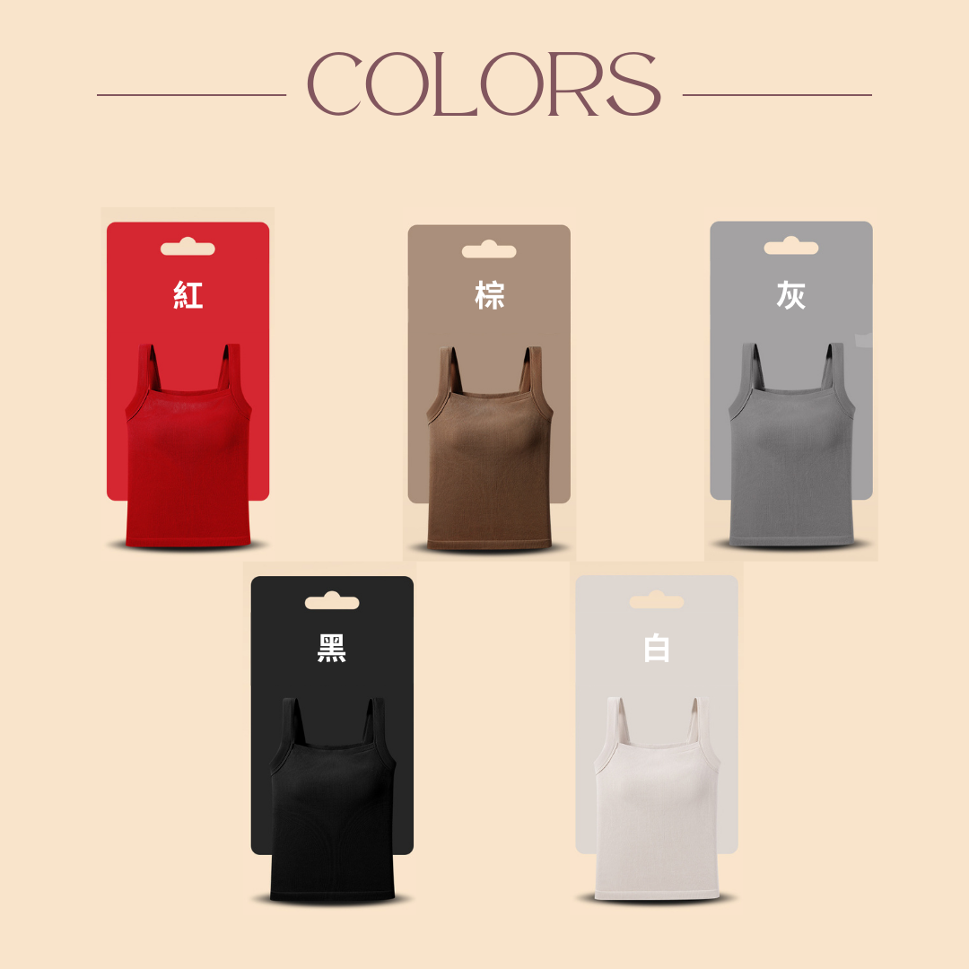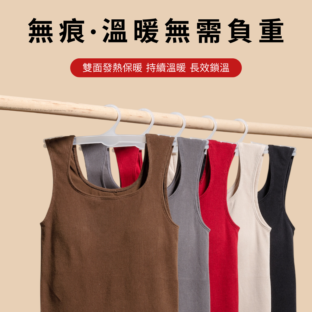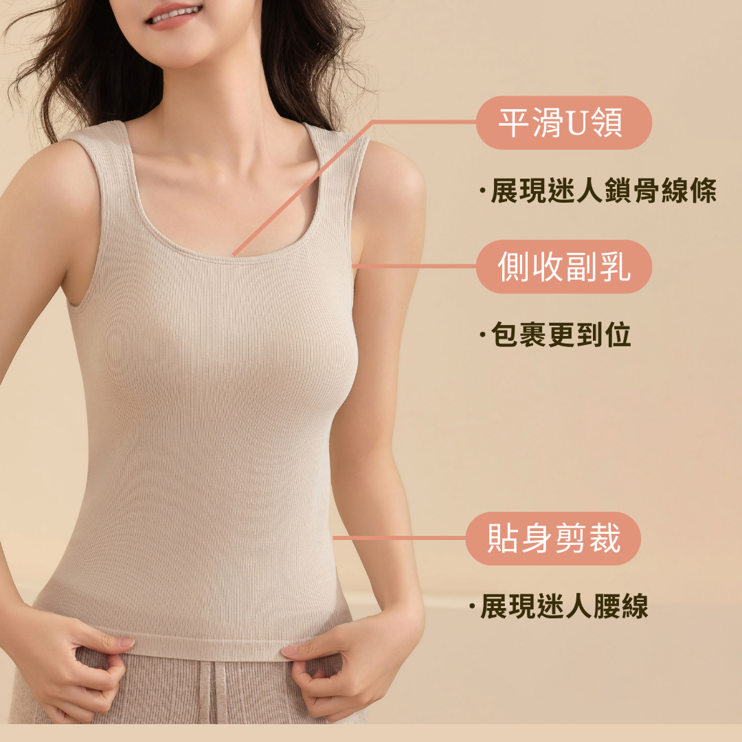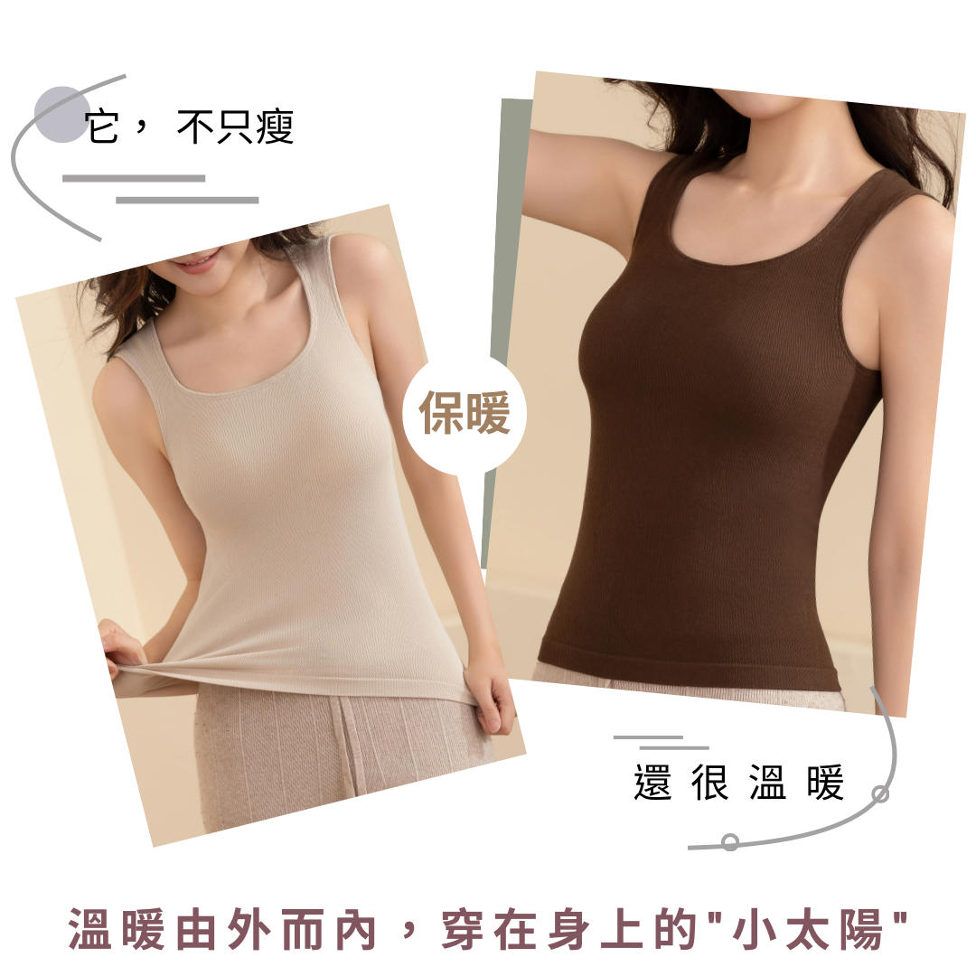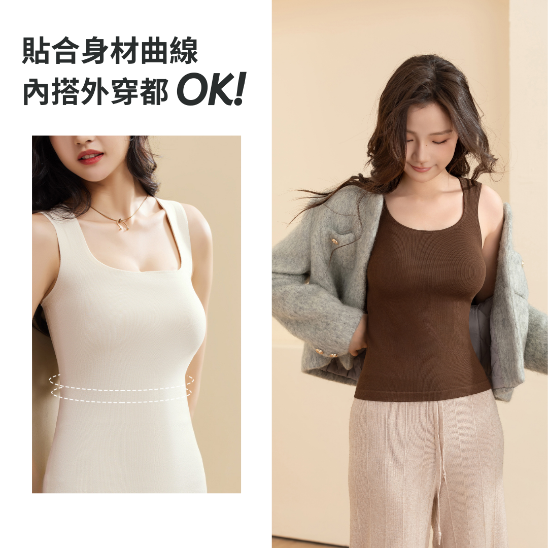 Velvet・保暖修身吊帶U型口背心-黑色 (5色)